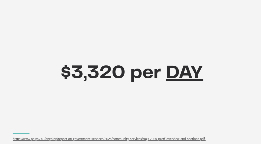 Per year, it costs around $๐ญ.๐ฎ ๐บ๐ถ๐น๐น๐ถ๐ผ๐ป to keep one young person in custody in Australia.